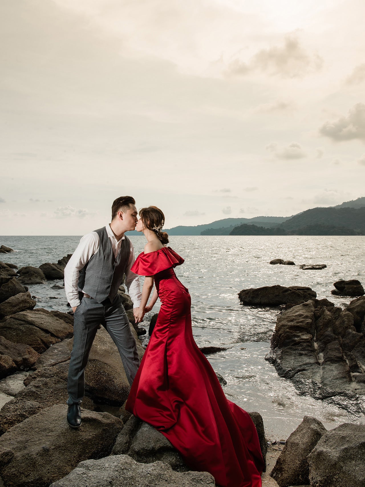 Pre-Wedding by the Beach of Penang is always one of our favorites, and of course your Pre-Wedding Photos looks more stunning with beautiful sunset in Penang. Love the connection with the Bride & Groom which shows their love through every photo.