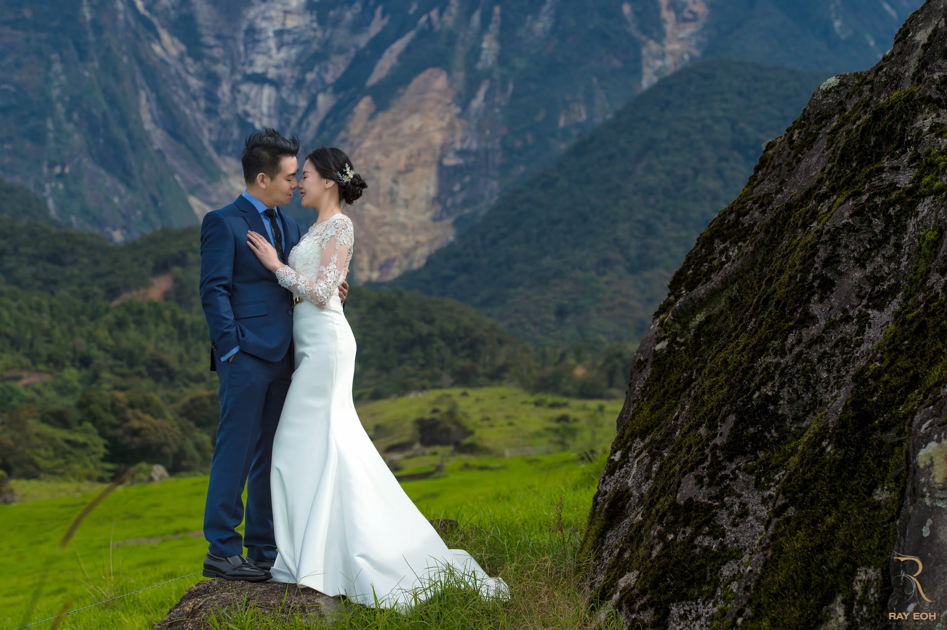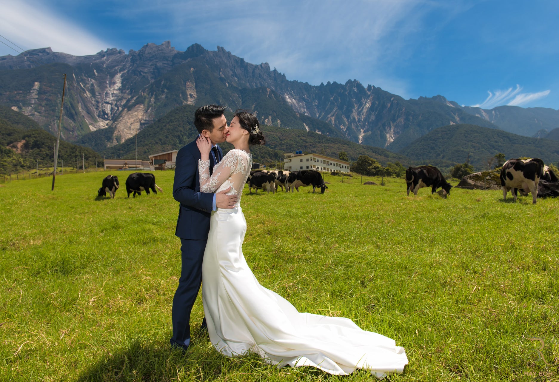 This destination pre-wedding photography shoot brings us to East Malaysia, capturing the beautiful natural landscapes of Sabah, Borneo. Our lovely couple takes the spotlight among the lush greenery fields with majestic Mount Kinabalu in the scenery.