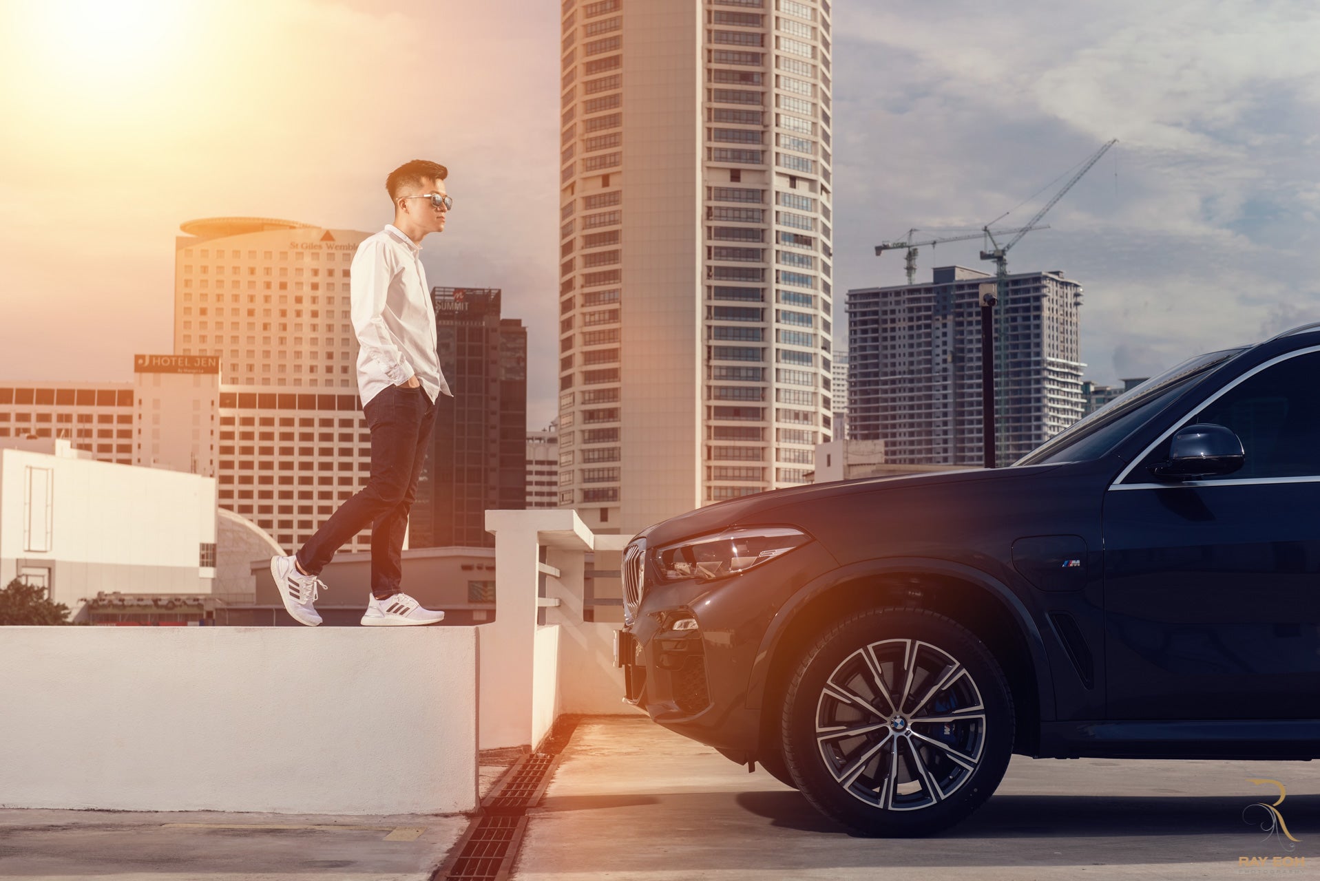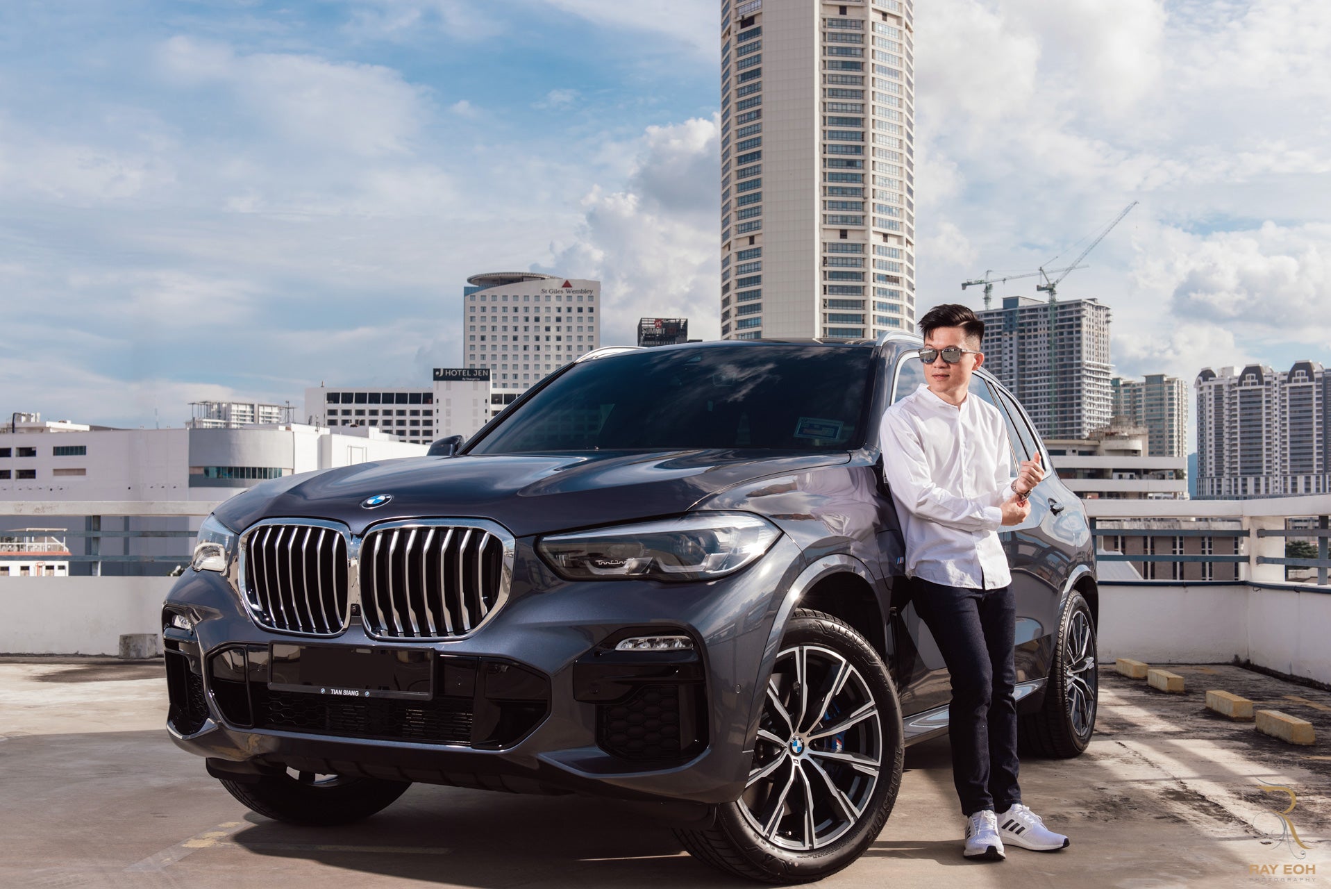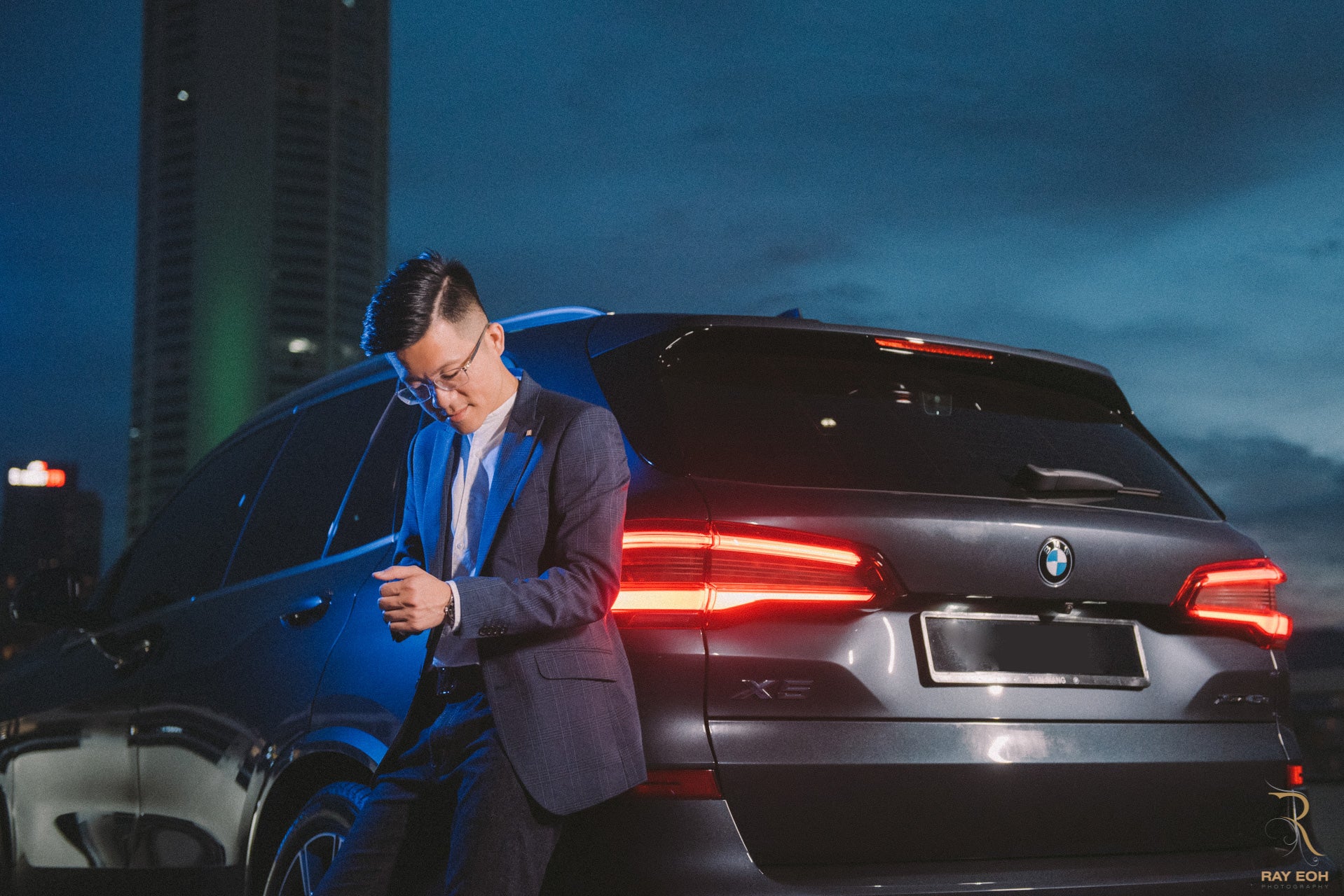 Outdoor professional business portrait shot in Georgetown city and iconic Komtar in the backdrop.